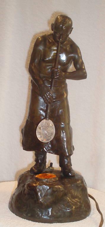 19.yy. yuvarlak kaideli cam yapan bir işçi tasvirli bronz lamba, ünlü Alman heykeltraş Korff imzalıdır. Cam kısmın altında altın sarısı bir ışık yanmaktadır.